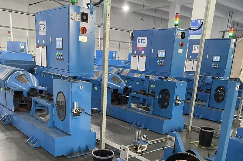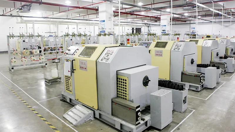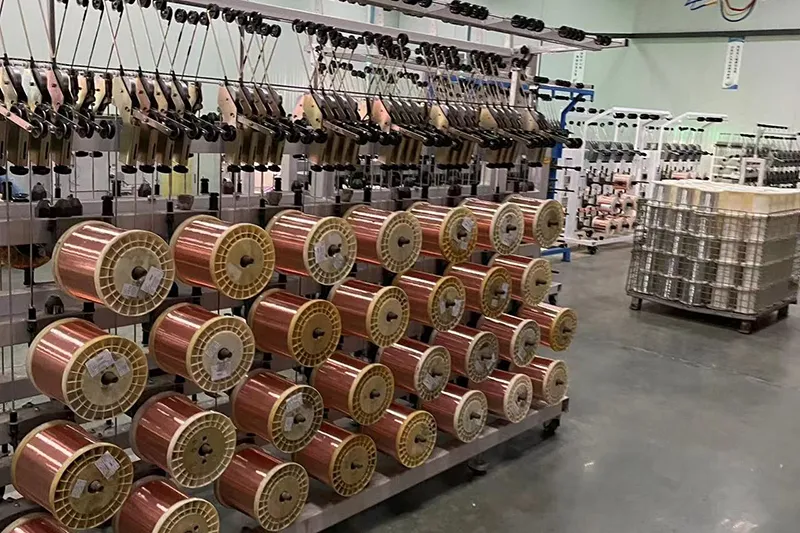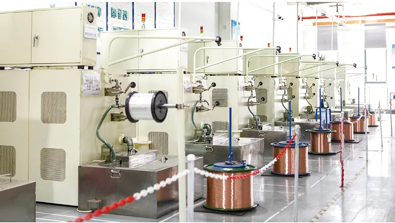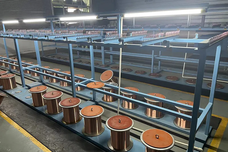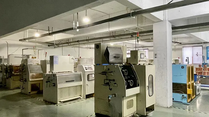 Our manufacturing facilities span 32,800㎡ and are capable of producing more than 400 types of copper and copper alloy wires, and other metal conductors, with a monthly production capacity exceeding 800 tons. The production process is organized into specialized workshops, including wire drawing (medium, small, and micro drawing), copper-clad steel processing, coating, and stranding workshops, annealing as well as inspection, and storage areas. The facilities are equipped with over 500 advanced machines, including wire drawing equipment, annealing units, stranding machines, coating systems, and cladding devices.